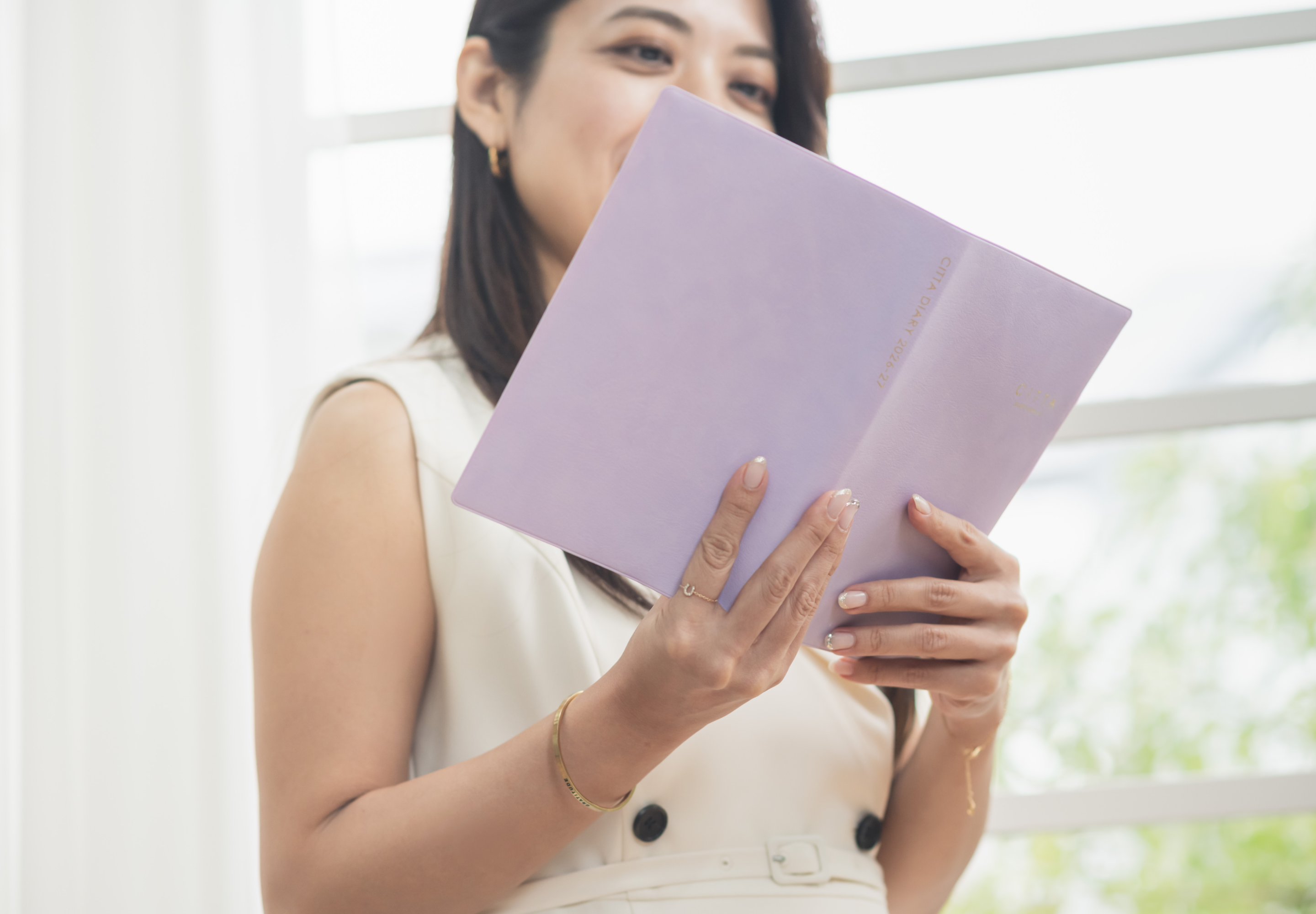 繊細さと優美さを持ち合わせた上品なライラックパープル。春の花が静かに咲き誇るように、この手帳はあなたの毎日を彩り、日々の瞬間を優しく包み込みます。
