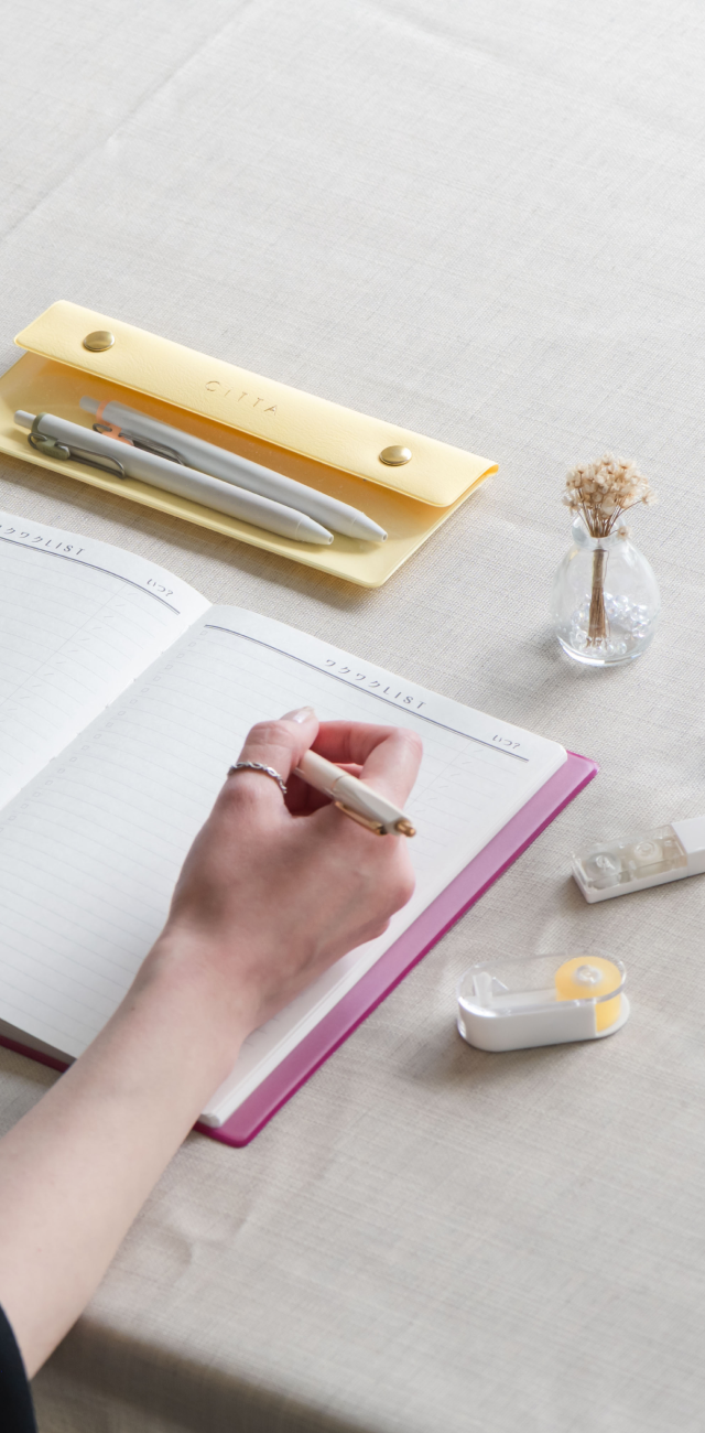 自分の好きなカバーで手帳を彩りたい。そんな方の為に究極にシンプルな「CITTA手帳」を作らせていただきました。カバーを纏わず、やさしいクリーム色の表紙。どんな手帳カバーにも合うよう、しおり無しの仕様となっております。自らの選択で自分の好きなようにCITTA手帳を彩り、思い通りに一年を描いてみませんか。