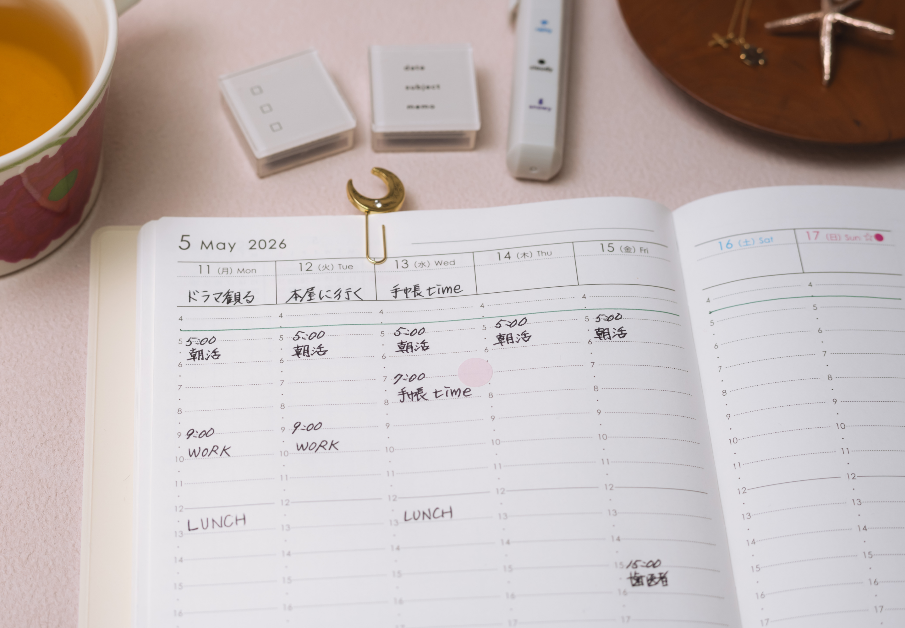 毎朝、「本当は何時に起きたい?」と自分に問いかけて、その時間をまず書いてみましょう。習慣にしたいことも、書くことで意識が変わります。