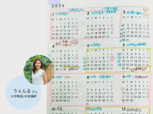 見通し感を持つために2ヶ月見渡せるマンスリーにしてあります。ここには時間を書かないようにしましょう。