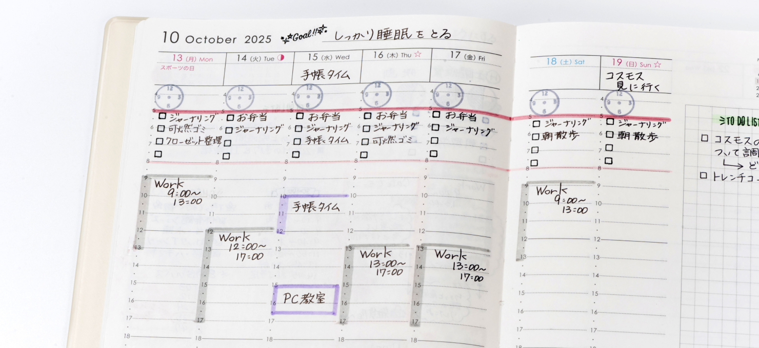 決まったスケジュールと“やりたいこと”を書くだけ。