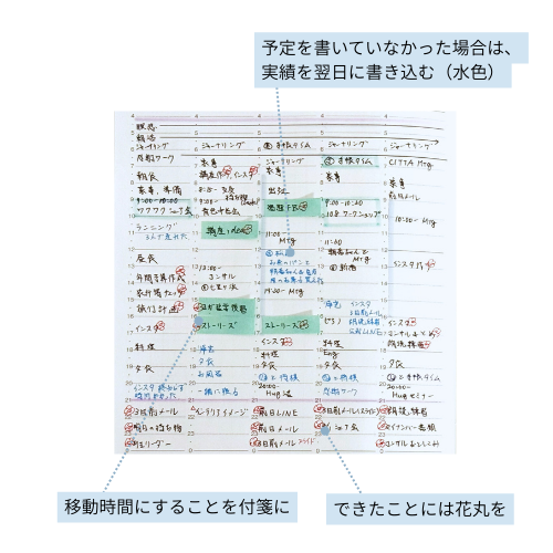 また、時間ごとにToDoを書いておくことで、次に何をするのか迷わなくなって時短につながるんです。