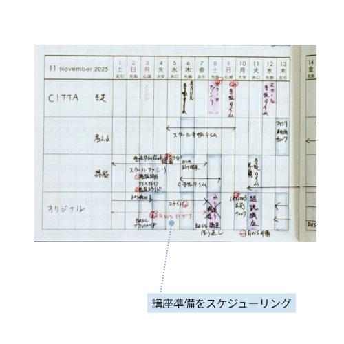 講座予定とそのための準備時間をプロジェクトページを活用して、予定を立てています。
