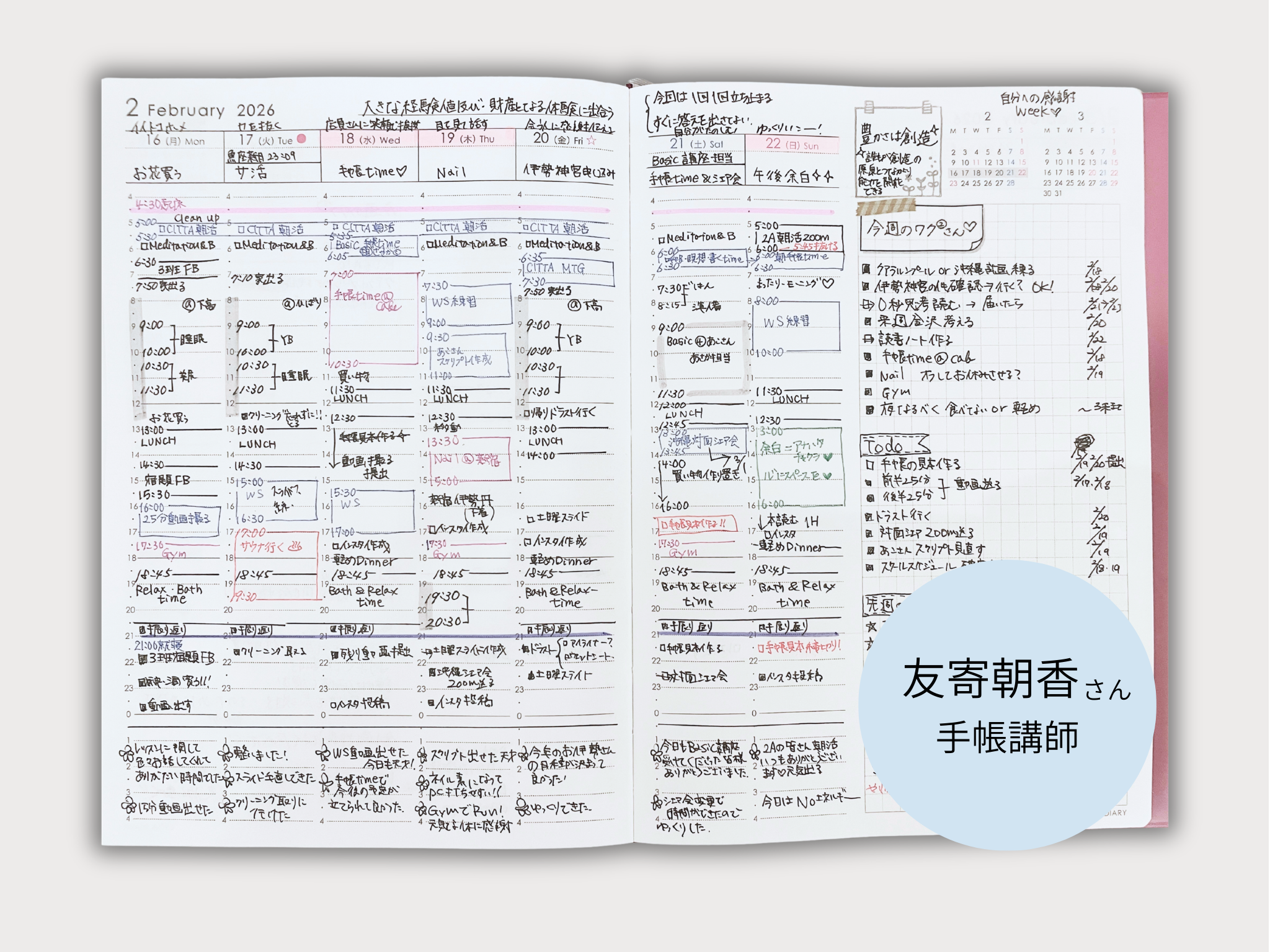 どんなに忙しい週でも、必ず先に「余白」の時間を確保しています。この余白が心の余裕につながり、自分にも周りにも優しくなれると感じています。